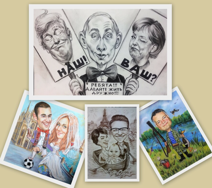 Все портреты, картины и шаржи выполняем вручную, без печати. Аккуратно прорабатываем детали, чтобы результат выглядел живо и качественно.