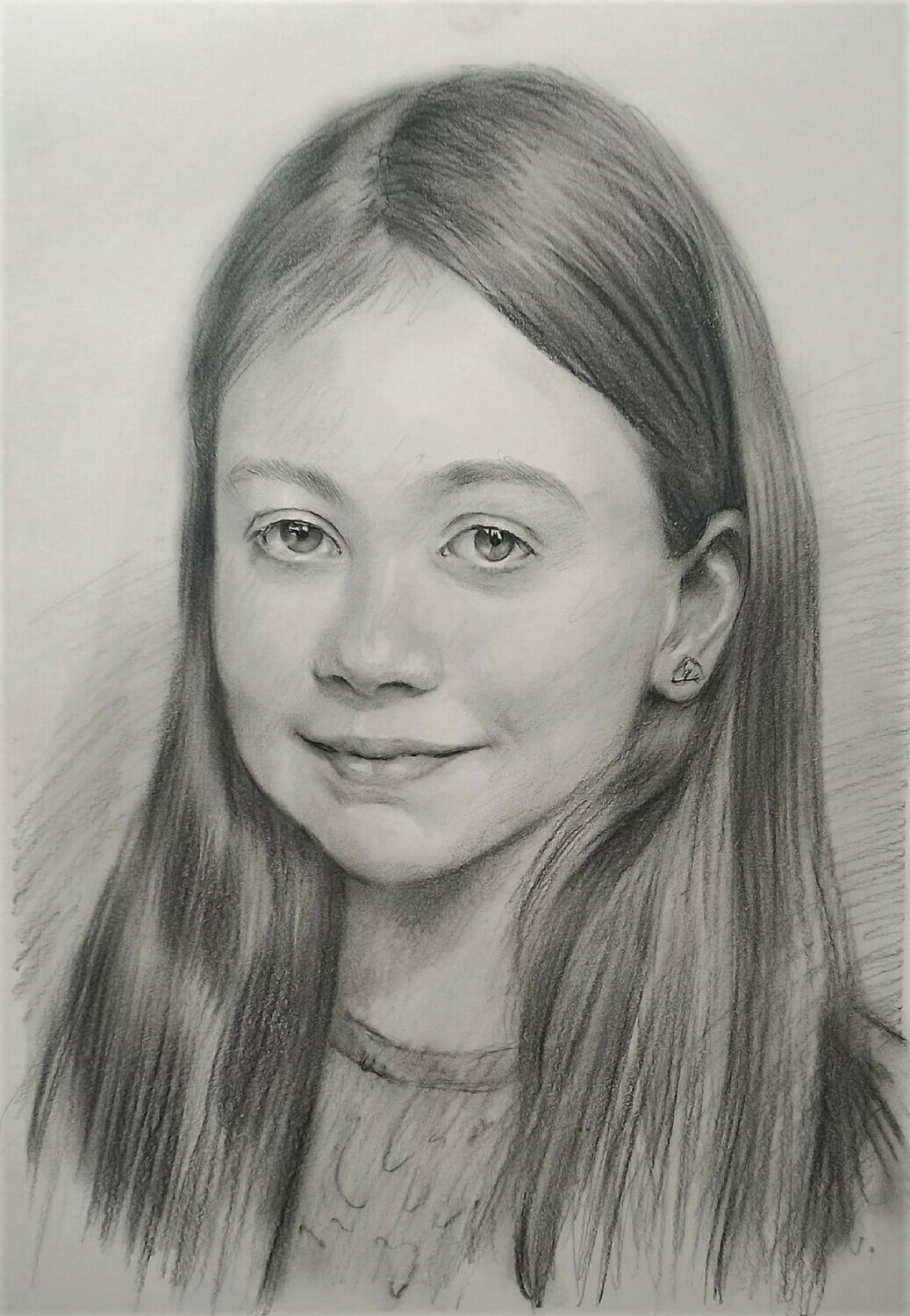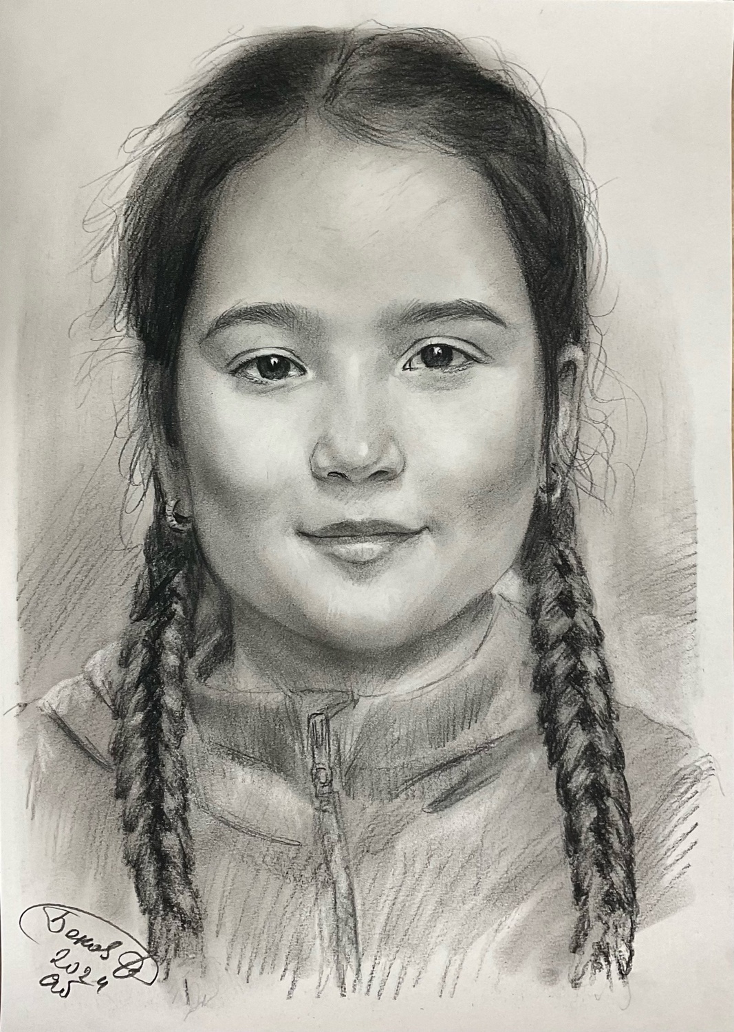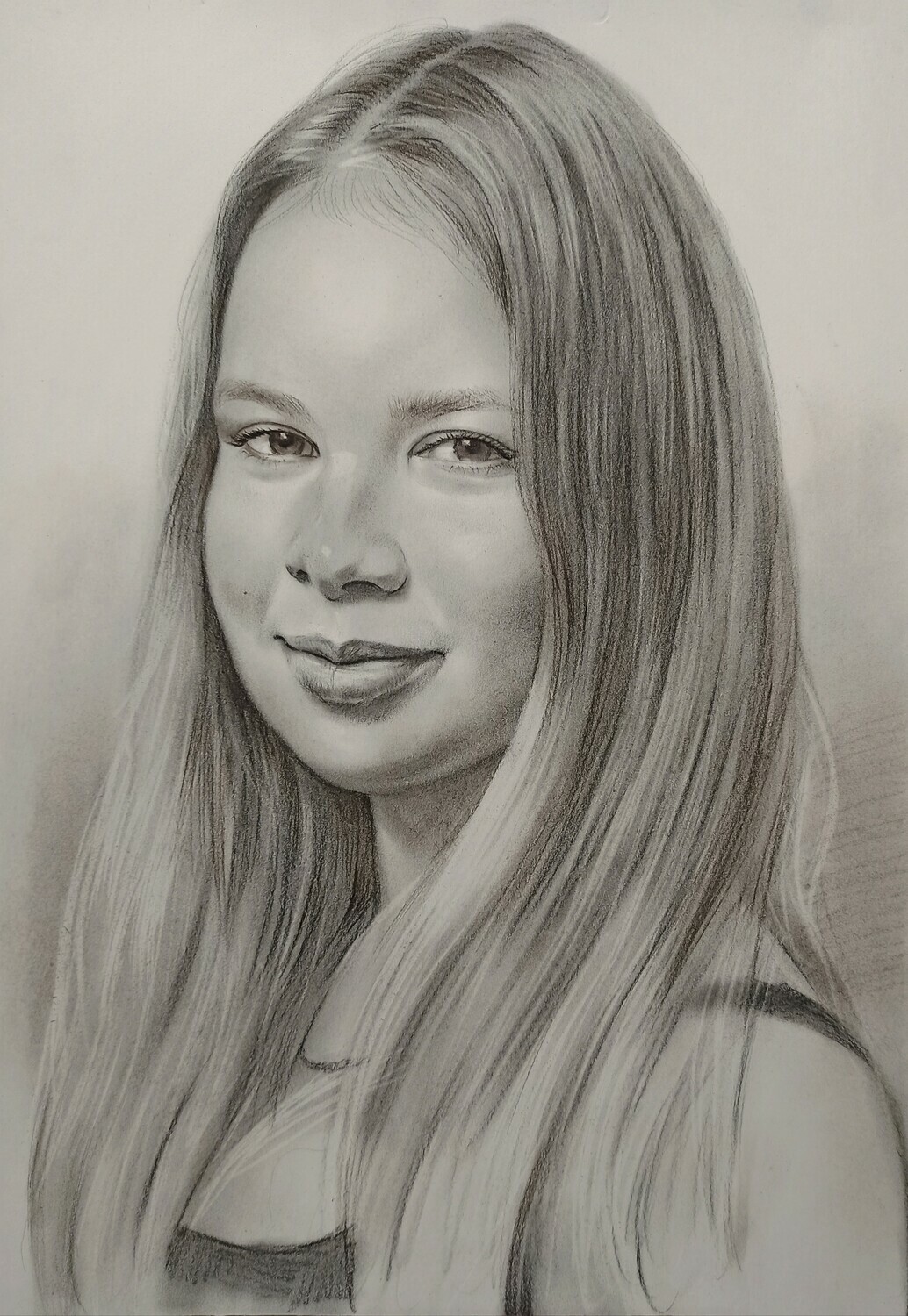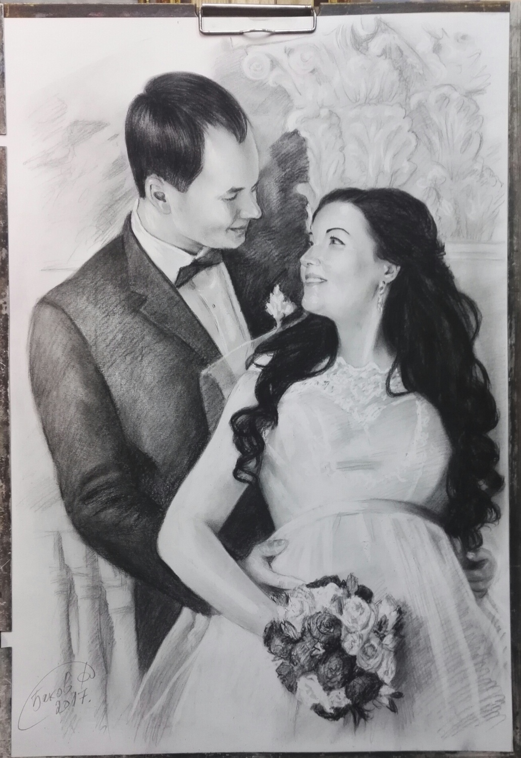 Дополнительного закрепления такой портрет не требует: он не размазывается и ведёт себя устойчиво. Оформляется просто и эстетично — как графика, под стекло в раму, что делает его практичным и удобным в уходе вариантом для дома или офиса.