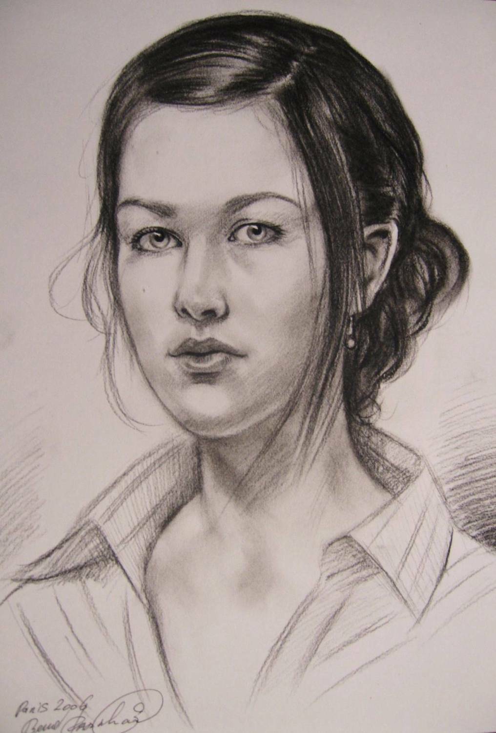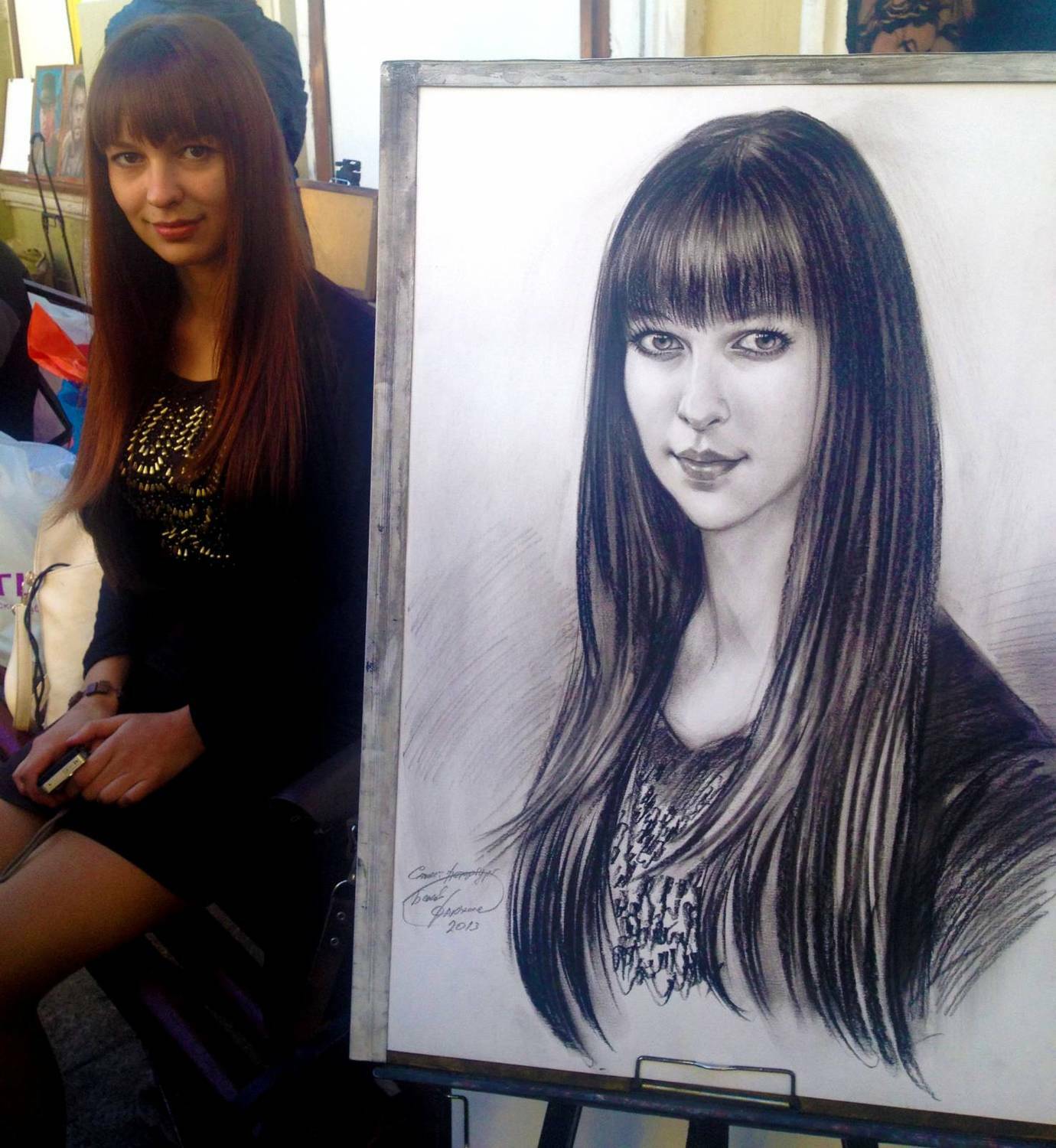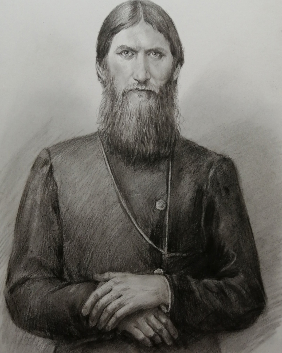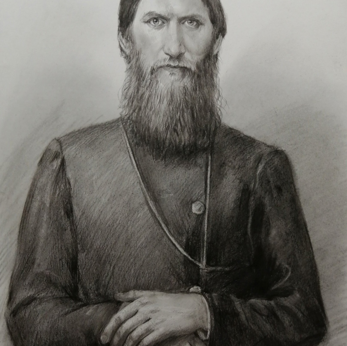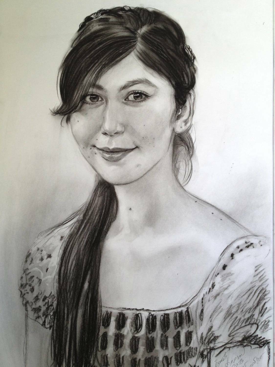 Дополнительного закрепления такой портрет не требует: он не размазывается и ведёт себя устойчиво. Оформляется просто и эстетично — как графика, под стекло в раму, что делает его практичным и удобным в уходе вариантом для дома или офиса.
