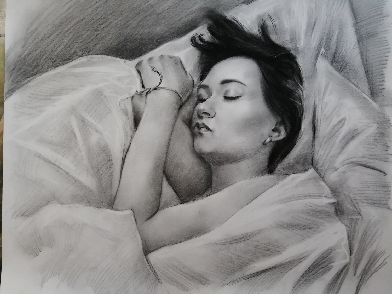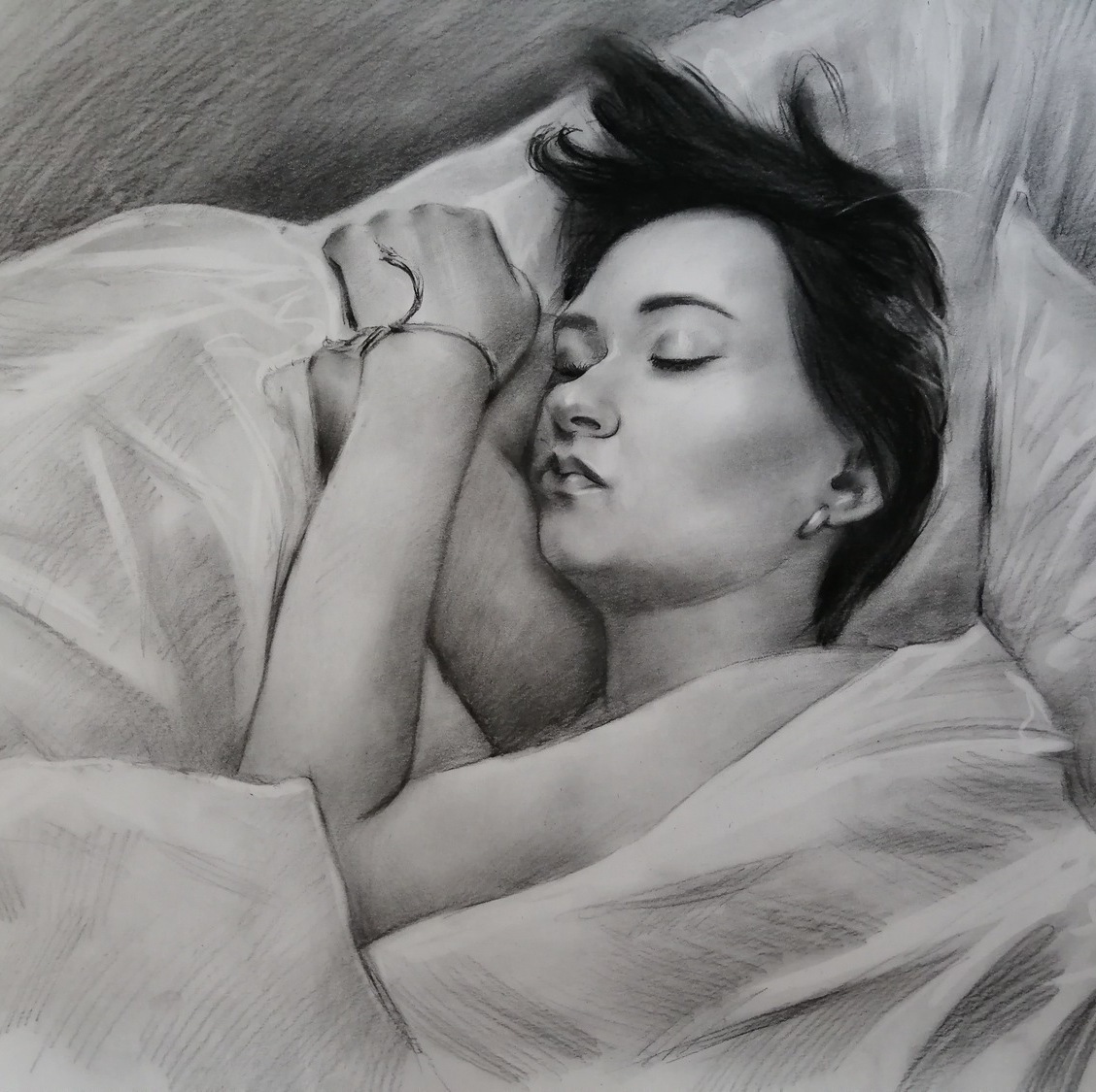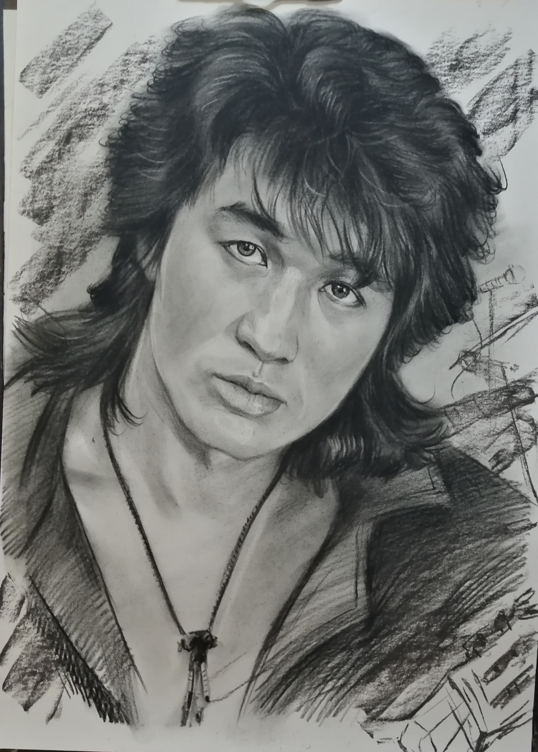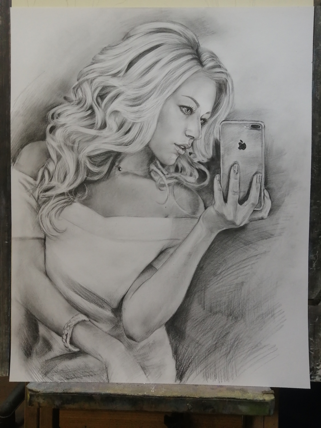 Дополнительного закрепления такой портрет не требует: он не размазывается и ведёт себя устойчиво. Оформляется просто и эстетично — как графика, под стекло в раму, что делает его практичным и удобным в уходе вариантом для дома или офиса.