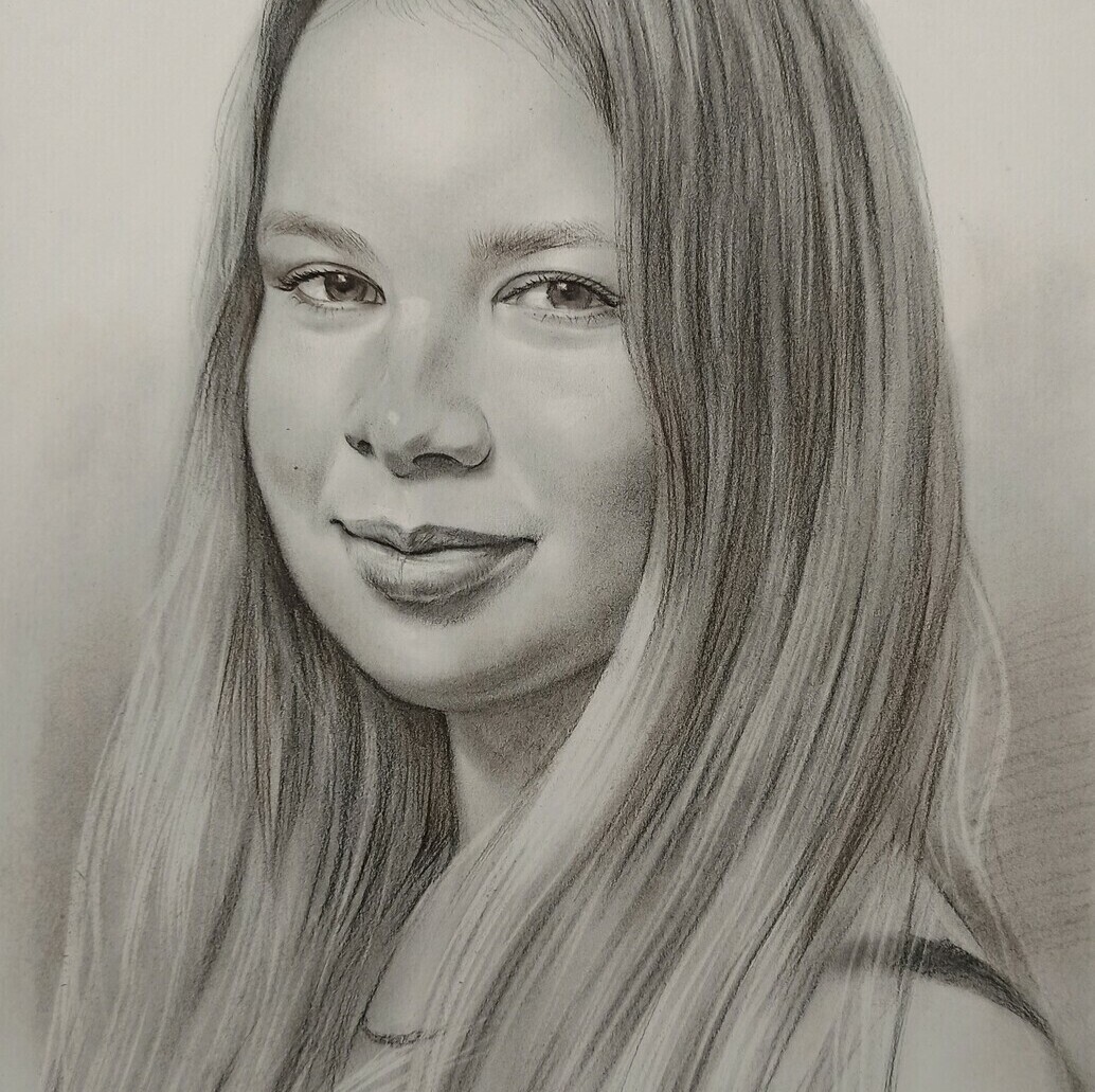 Портрет в технике «сухая кисть» по фотографии выполняется в реалистичной манере и пользуется особой популярностью благодаря тому, что визуально напоминает фотографию. В этой технике особенно хорошо передаются черты лица, взгляд и мелкие детали — портрет получается точным, выразительным и очень «живым».