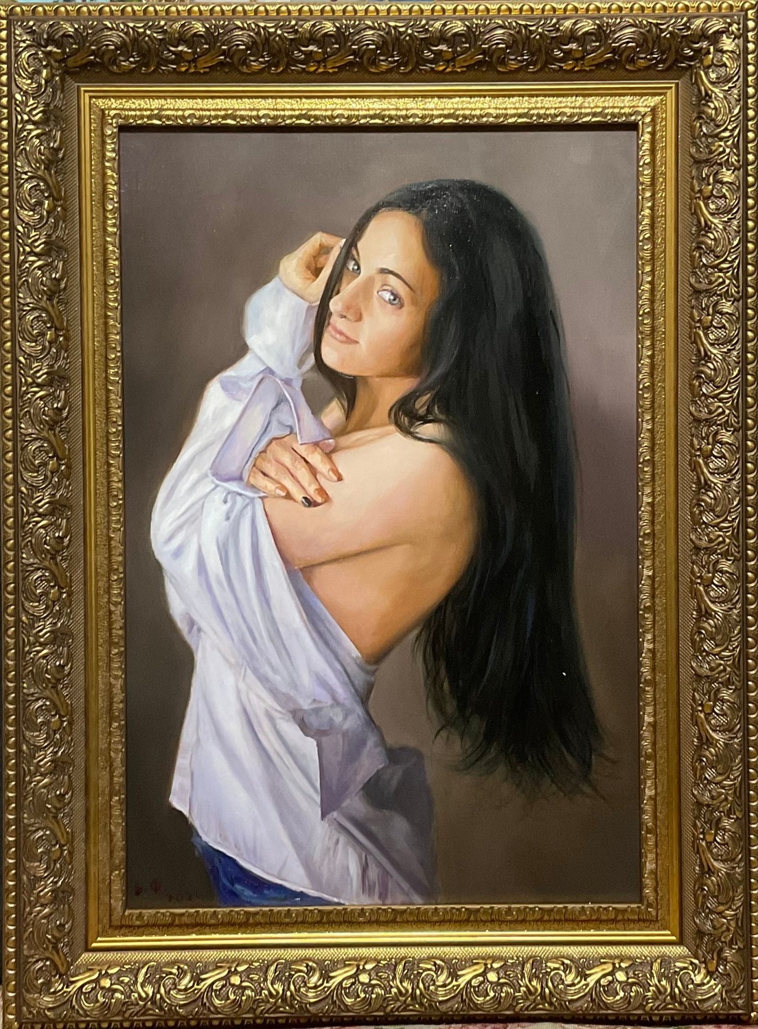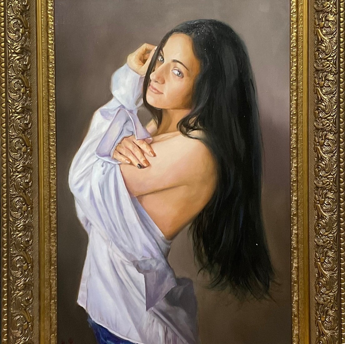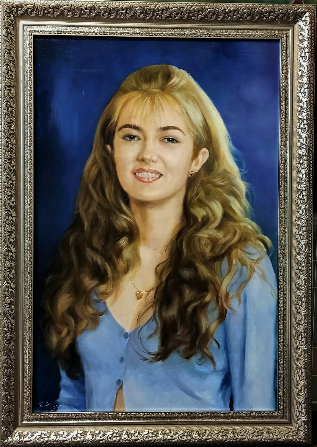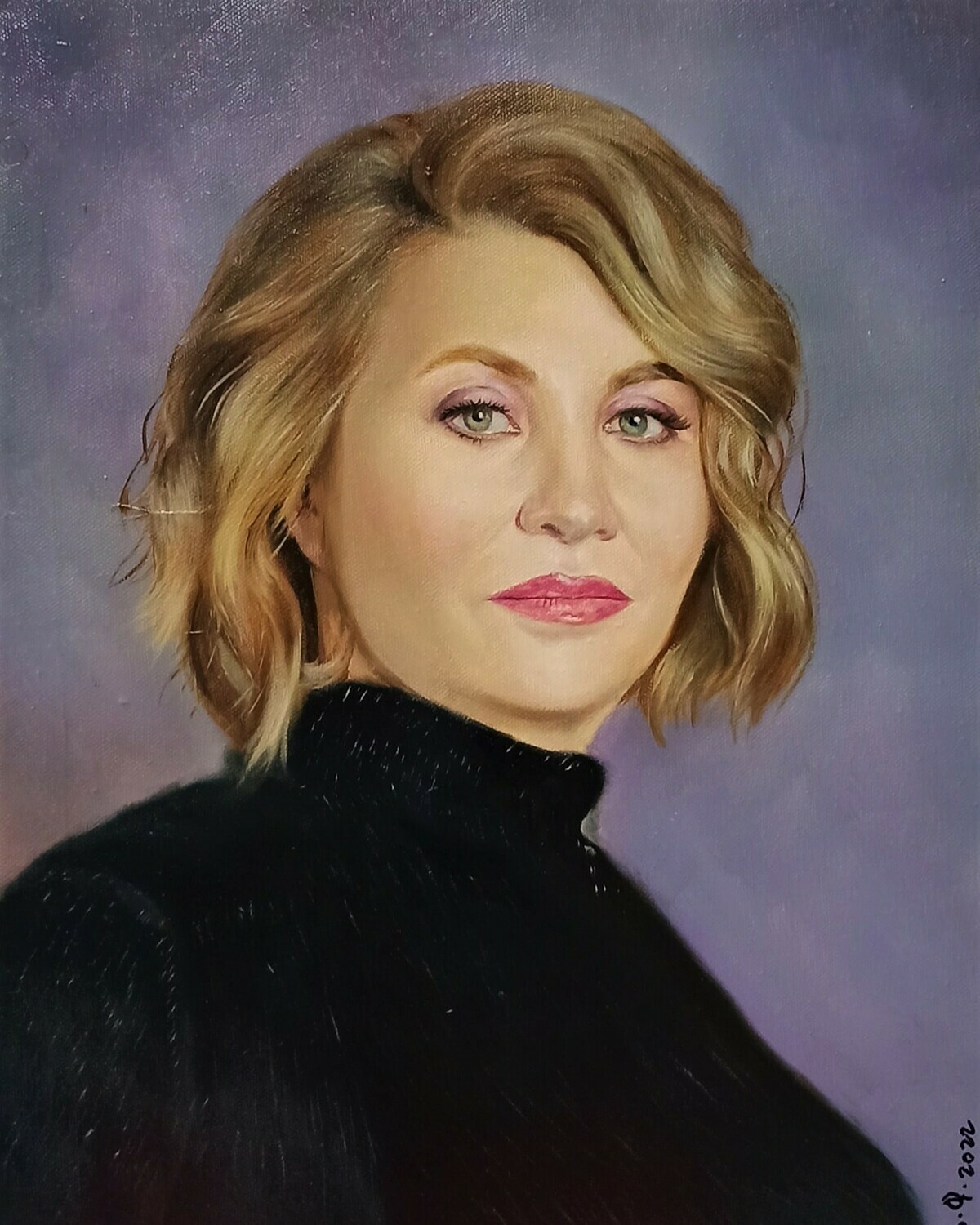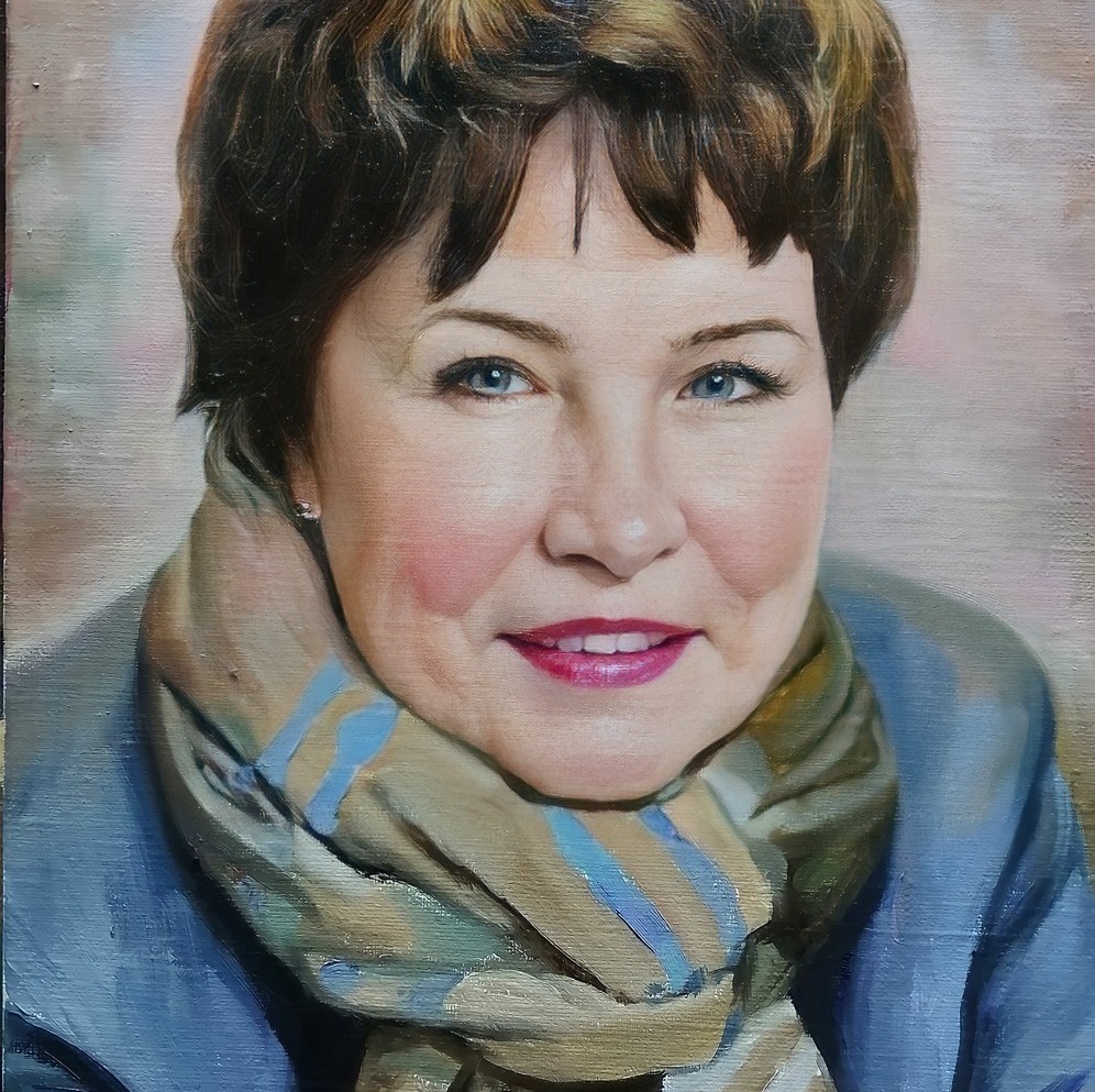 Портрет маслом на холсте по фотографии выполняется в реалистичной манере — в традиционной классической технике старых мастеров. Это живопись, где особое внимание уделяется сходству, пластике лица, светотени и глубине цвета, чтобы образ выглядел максимально «живым» и выразительным.