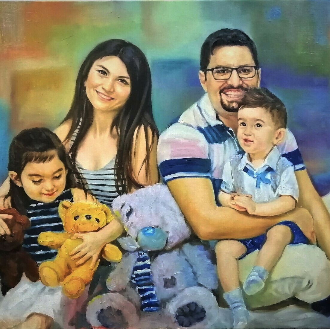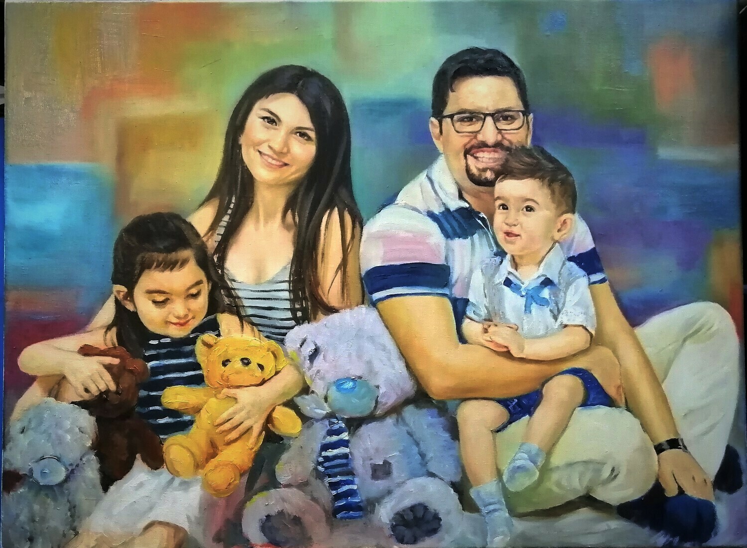 Сроки исполнения — от трёх дней до двух месяцев, в зависимости от размера холста и количества изображаемых людей. Масляная живопись требует времени, потому что краска сохнет медленно, а это напрямую влияет на качество результата. Для работы обязательно нужна фотография хорошего качества — именно она помогает точно передать черты и детали. Такие картины впечатляют своей буквальностью, при этом выглядят солидно и даже роскошно.