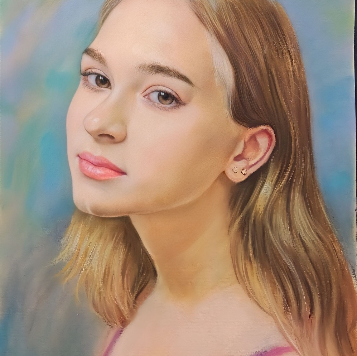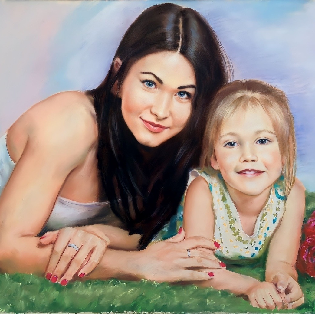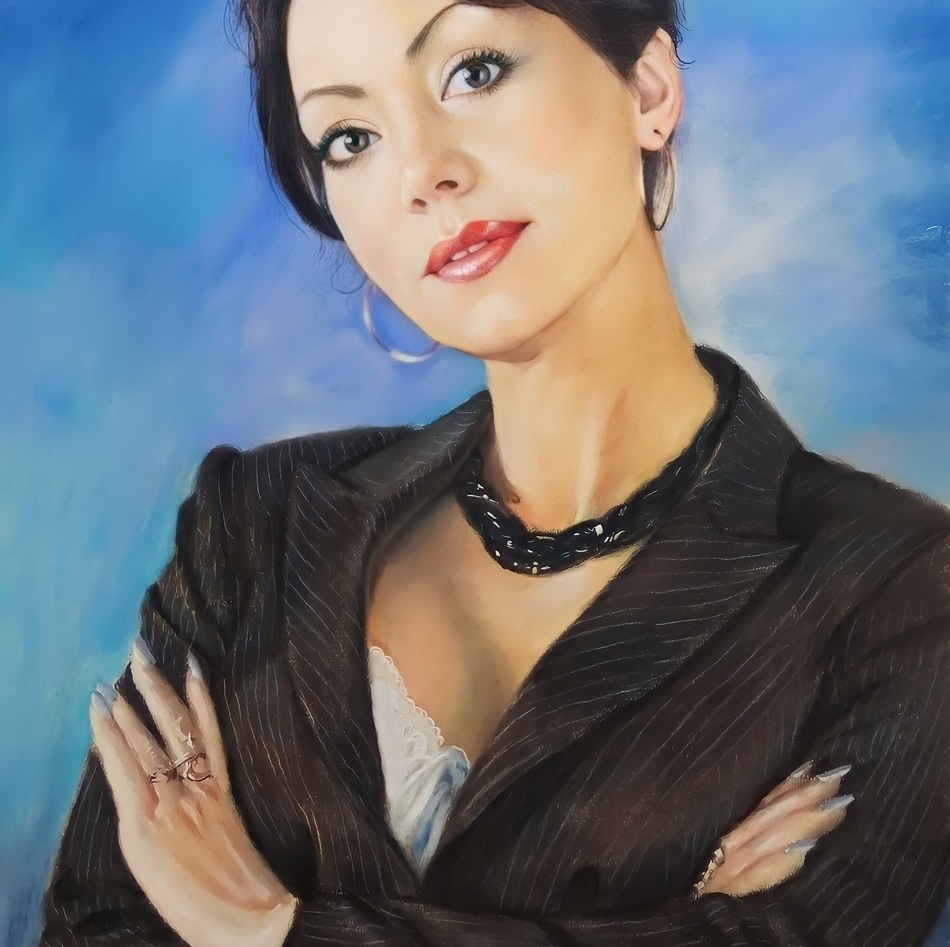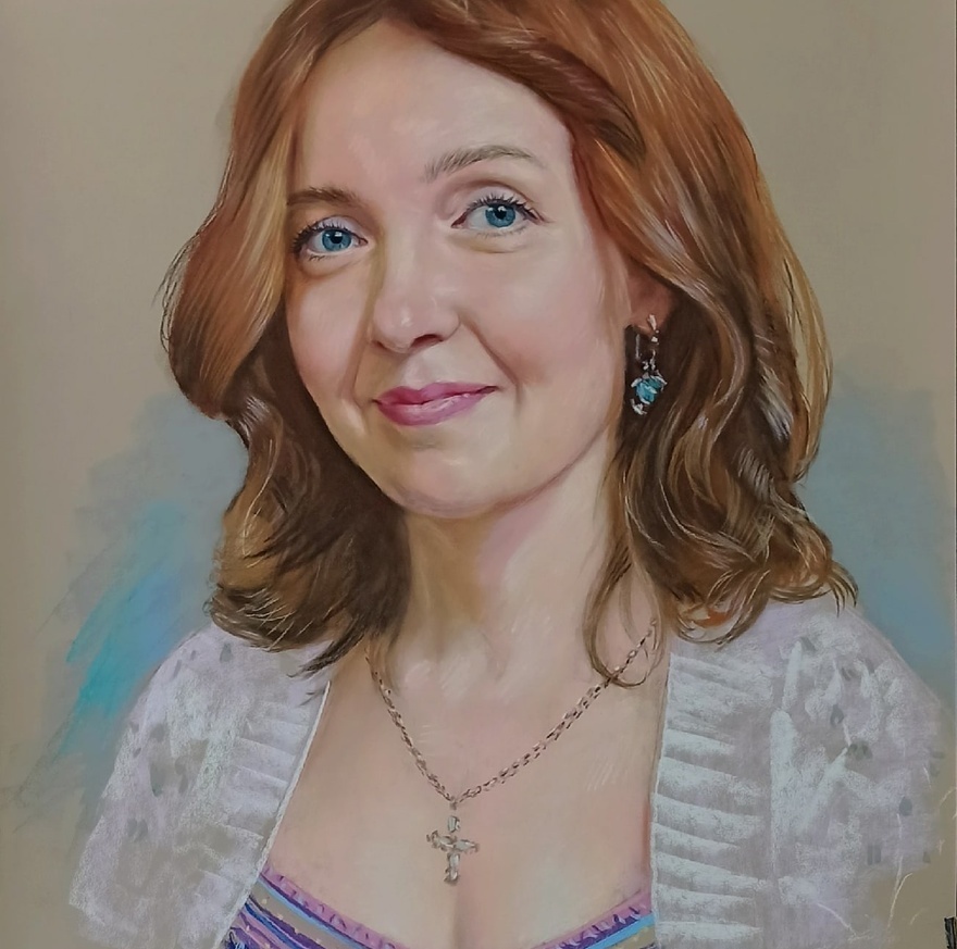 Пастельные портреты популярны именно из-за своих мягких полутонов и плавных переходов. По выразительности и глубине они могут не уступать даже масляной живописи, но при этом смотрятся легче и деликатнее. Эта техника позволяет создать не только реалистичный портрет, но и более художественный образ — с тонкой атмосферой и красивым настроением.