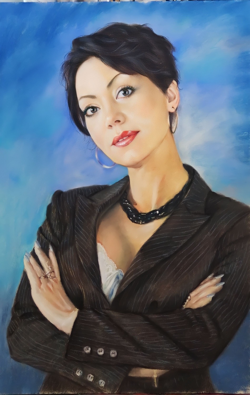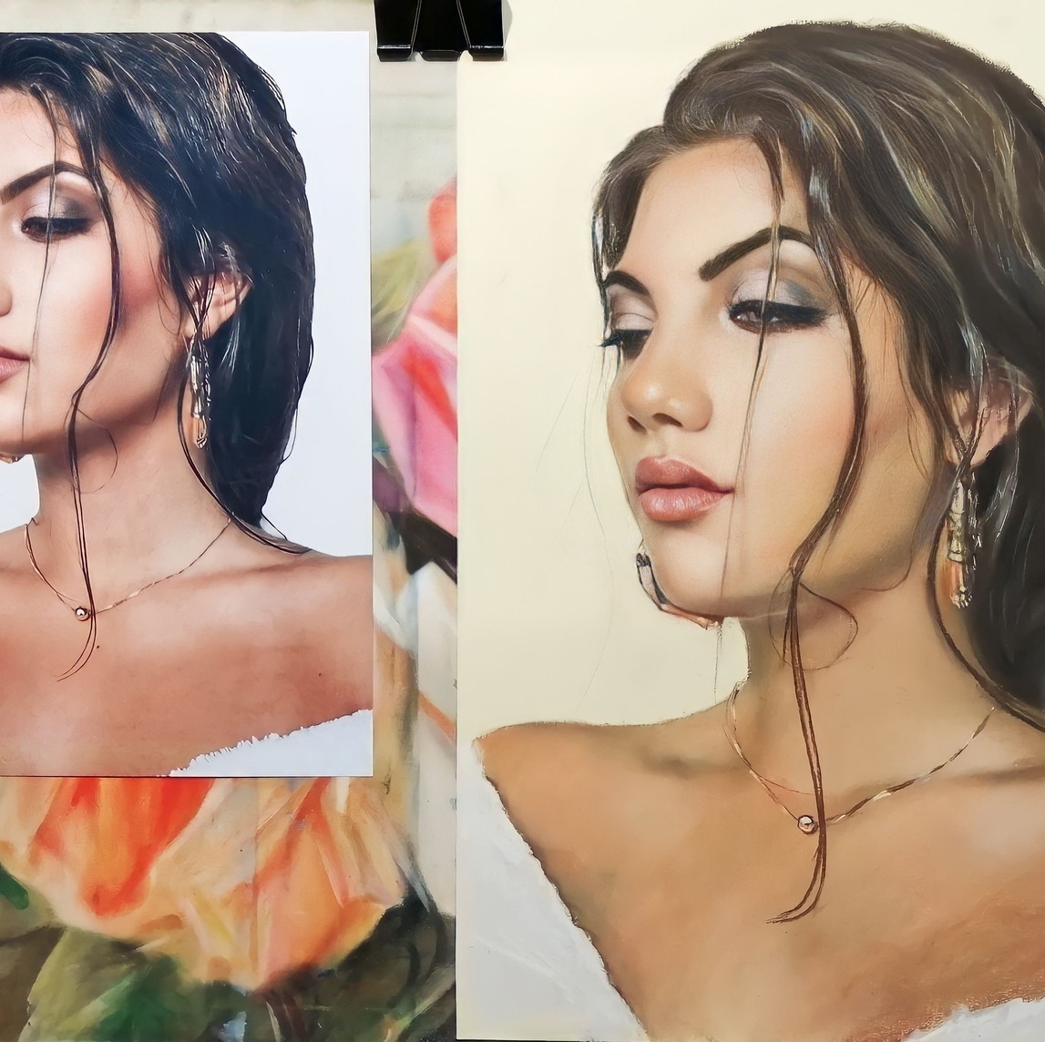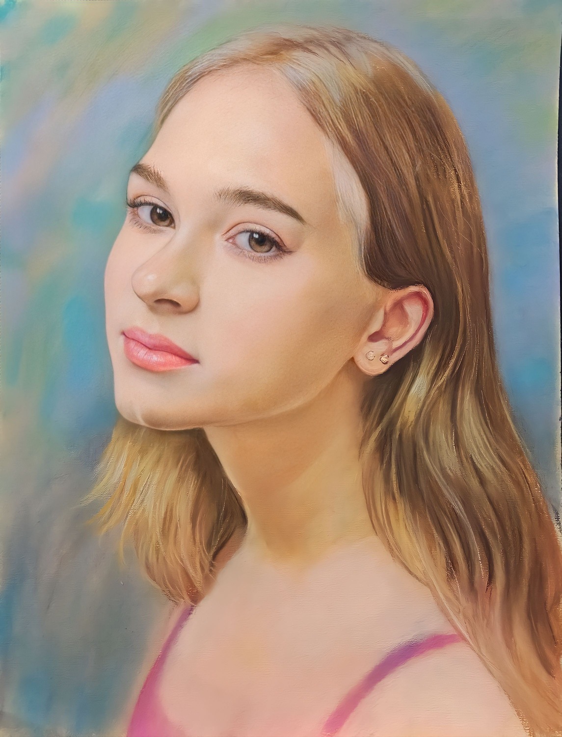 Пастельные портреты популярны именно из-за своих мягких полутонов и плавных переходов. По выразительности и глубине они могут не уступать даже масляной живописи, но при этом смотрятся легче и деликатнее. Эта техника позволяет создать не только реалистичный портрет, но и более художественный образ — с тонкой атмосферой и красивым настроением.