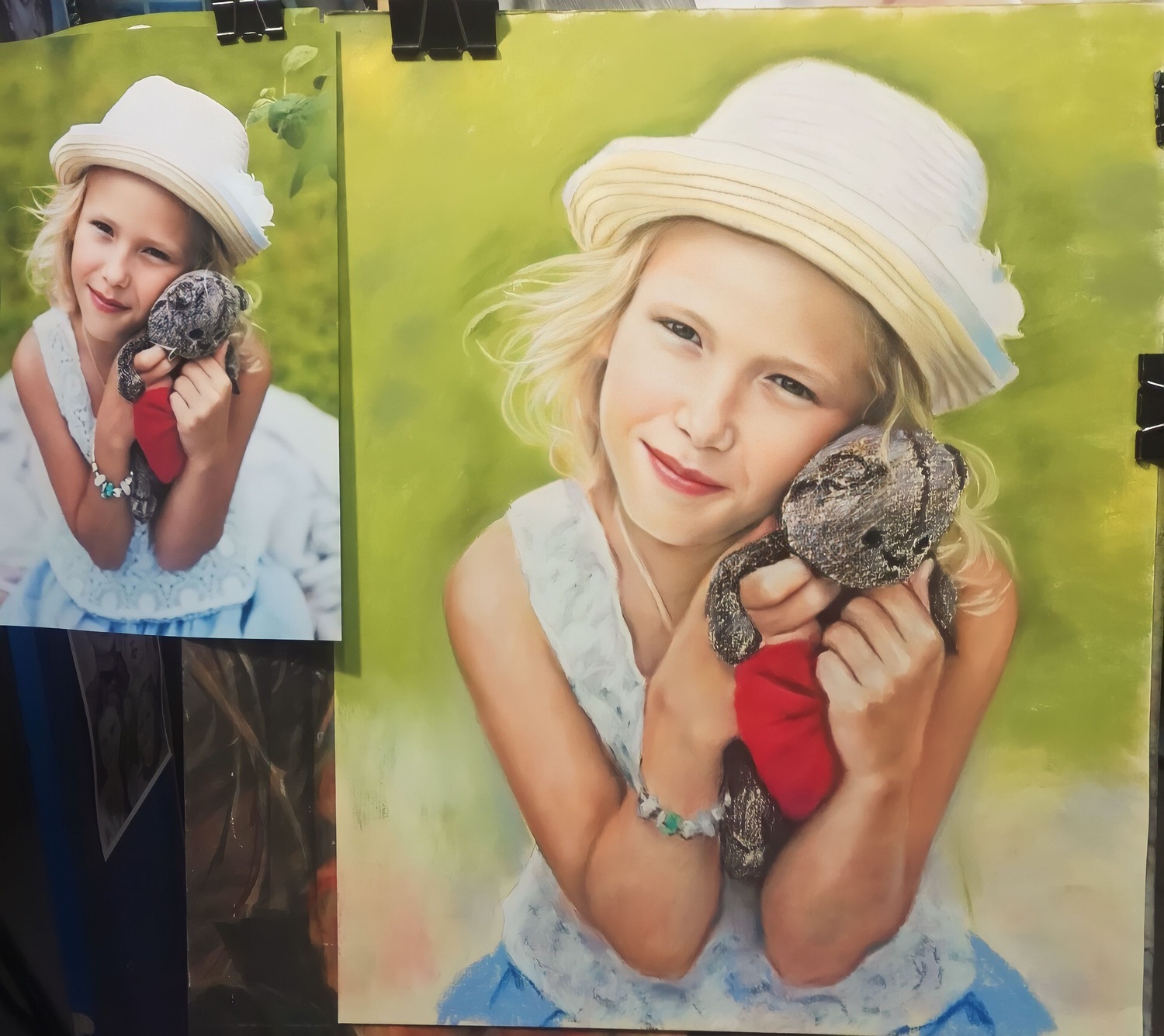 Для сохранности пастельного портрета важно правильное оформление: требуется рама со стеклом, а в идеале — сначала оформить работу в паспарту, чтобы красочный слой не соприкасался со стеклом. Техника пастели известна уже около пятисот лет, и при соблюдении норм хранения пастельные работы сохраняют цвет и качество на протяжении многих лет. Такой портрет будет радовать вас долго, оставаясь таким же свежим и выразительным, как в день завершения.