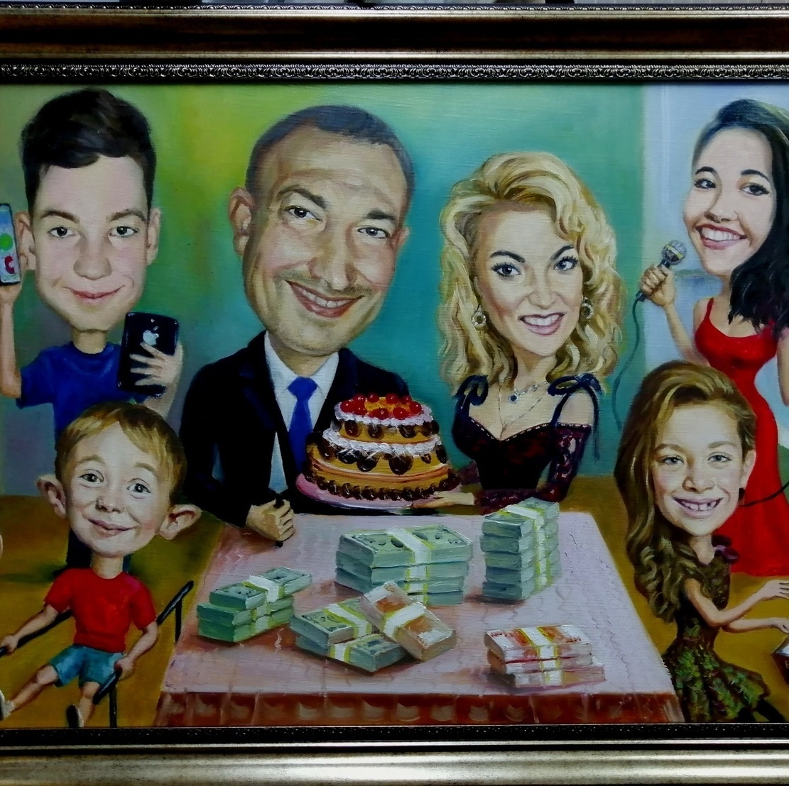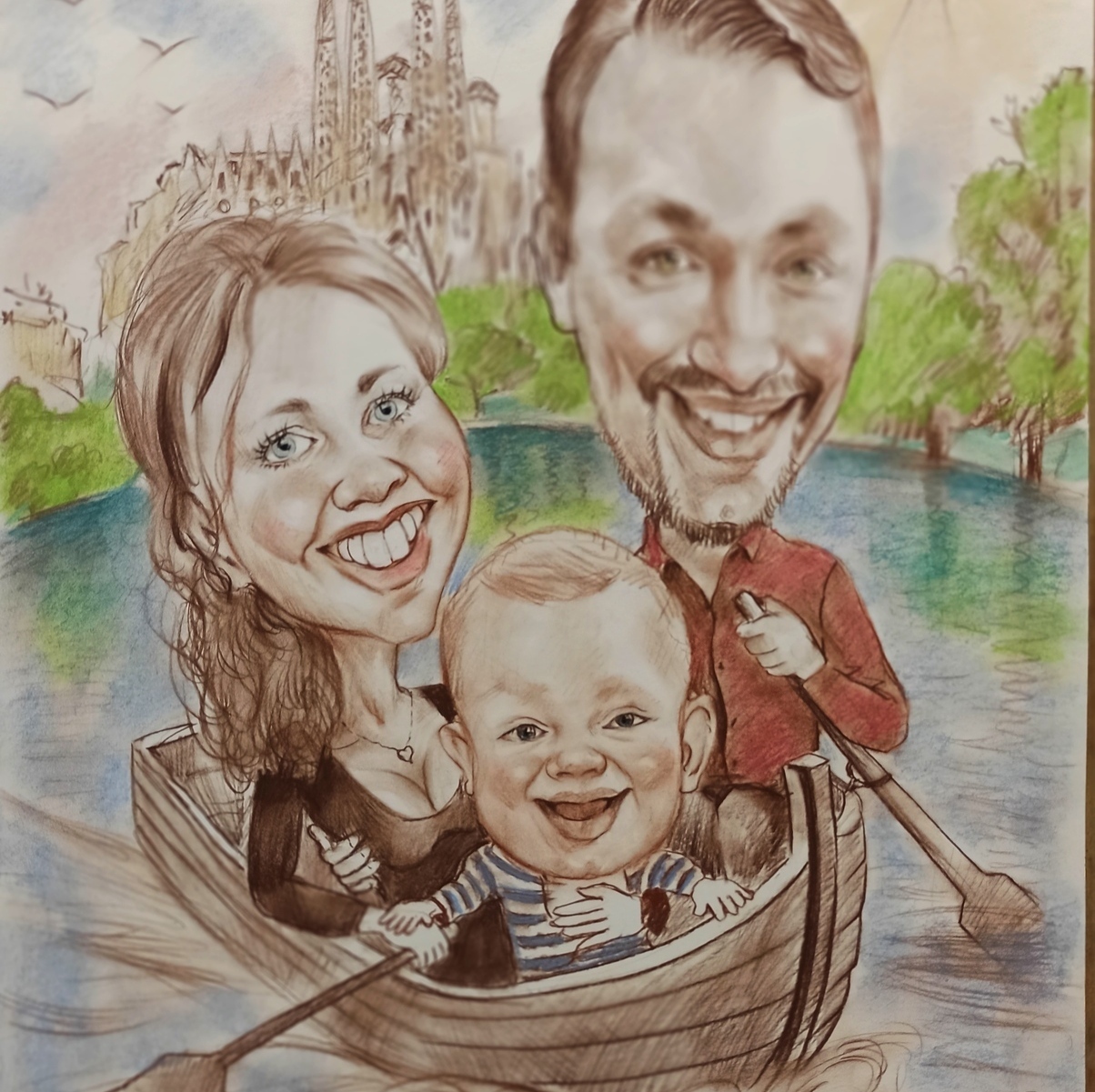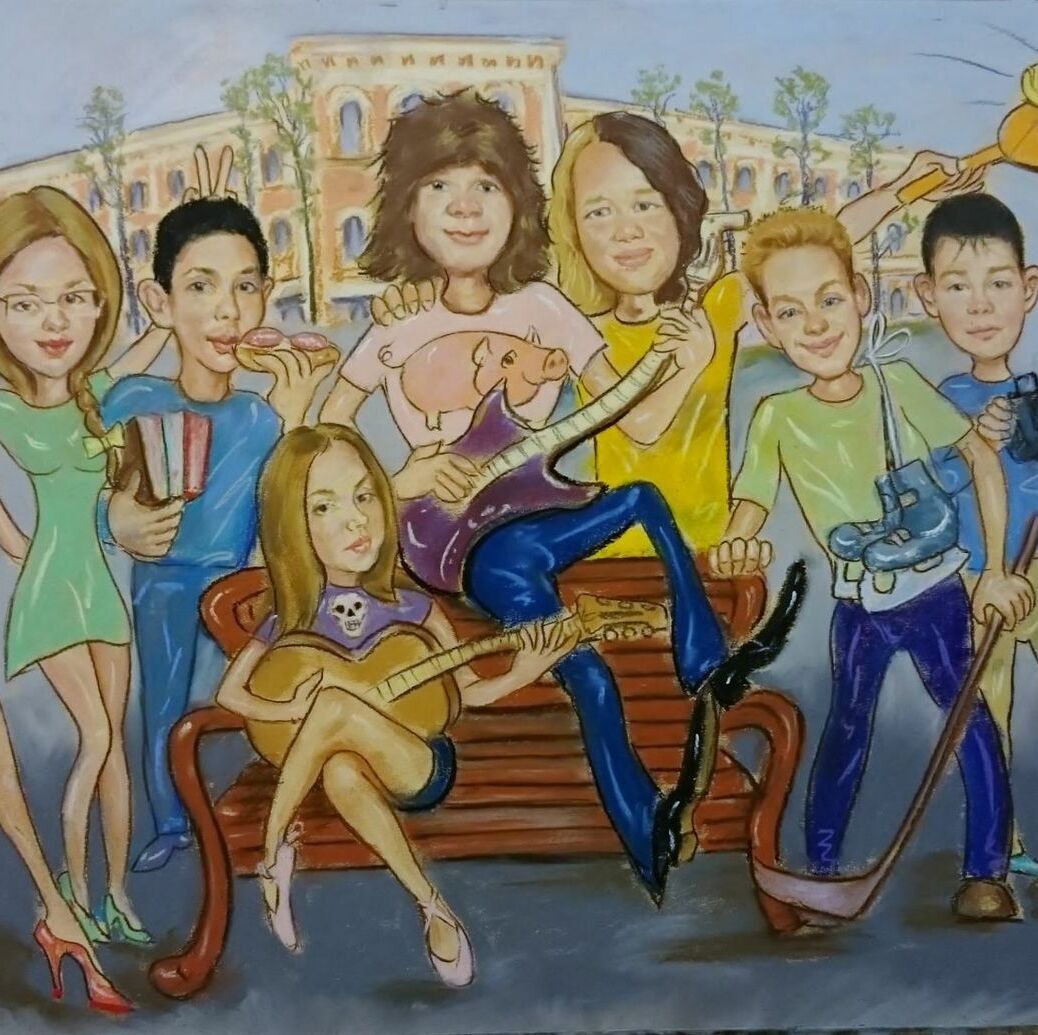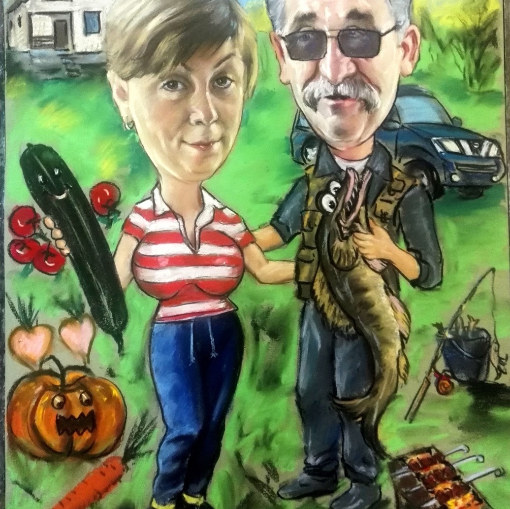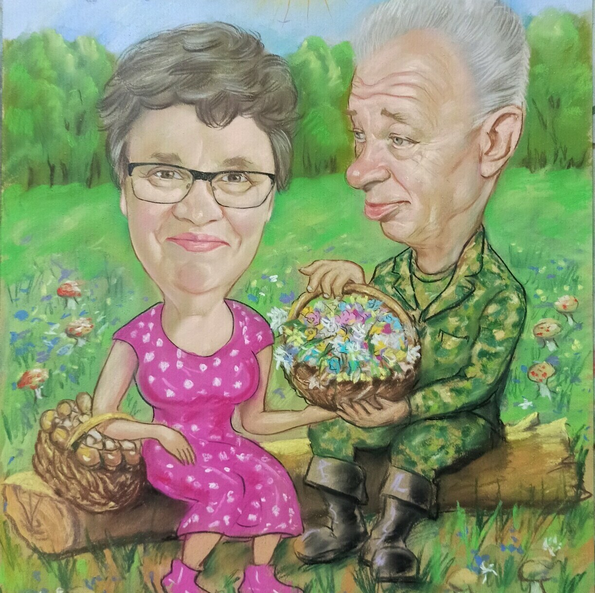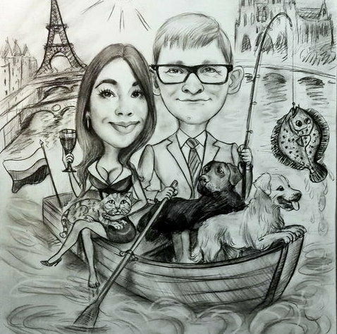 Работа создаётся по фото хорошего качества: чем лучше видны лицо, мимика и детали, тем точнее получится результат. Можно сделать шарж одного человека, пары или целой компании, а также объединить людей с разных фотографий в одну композицию. При желании добавляем сюжет: любимое хобби, профессию, интересные детали, фон или предметы — чтобы шарж выглядел персонально и «про вас».