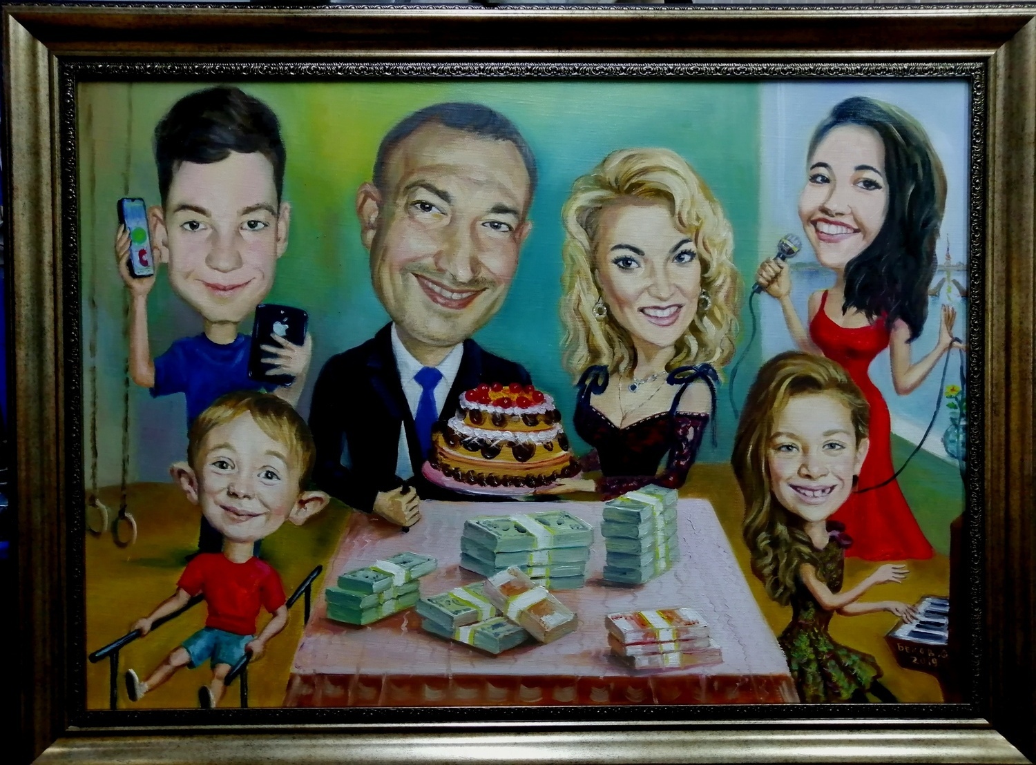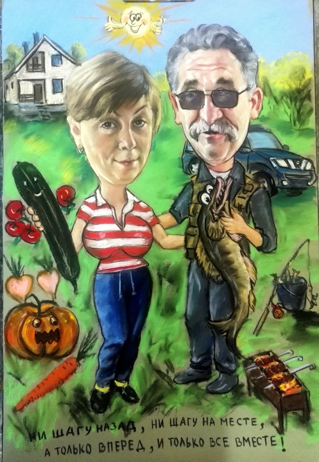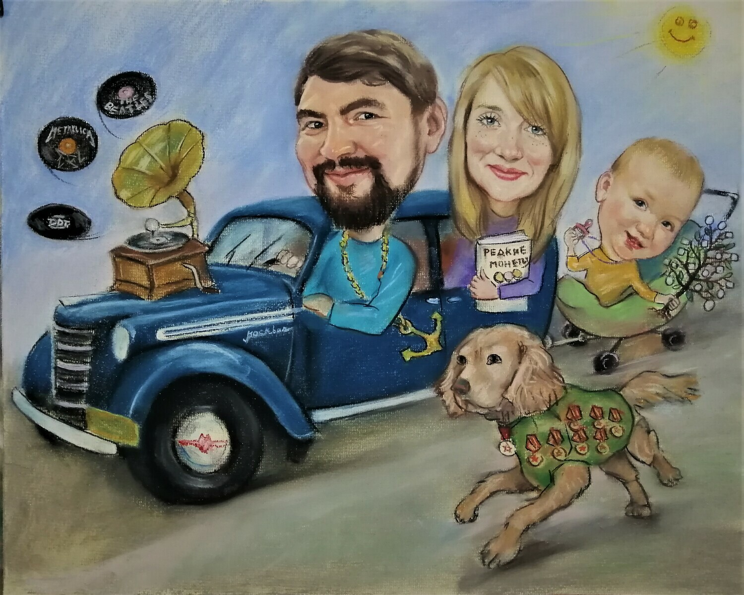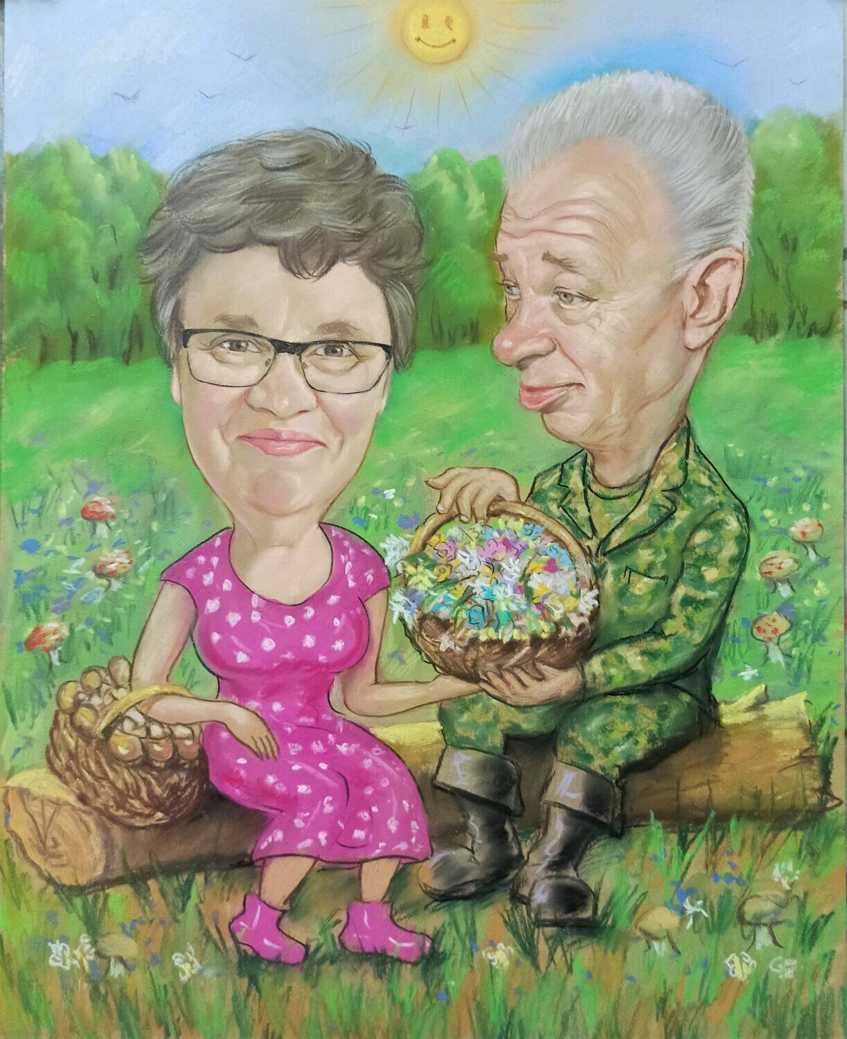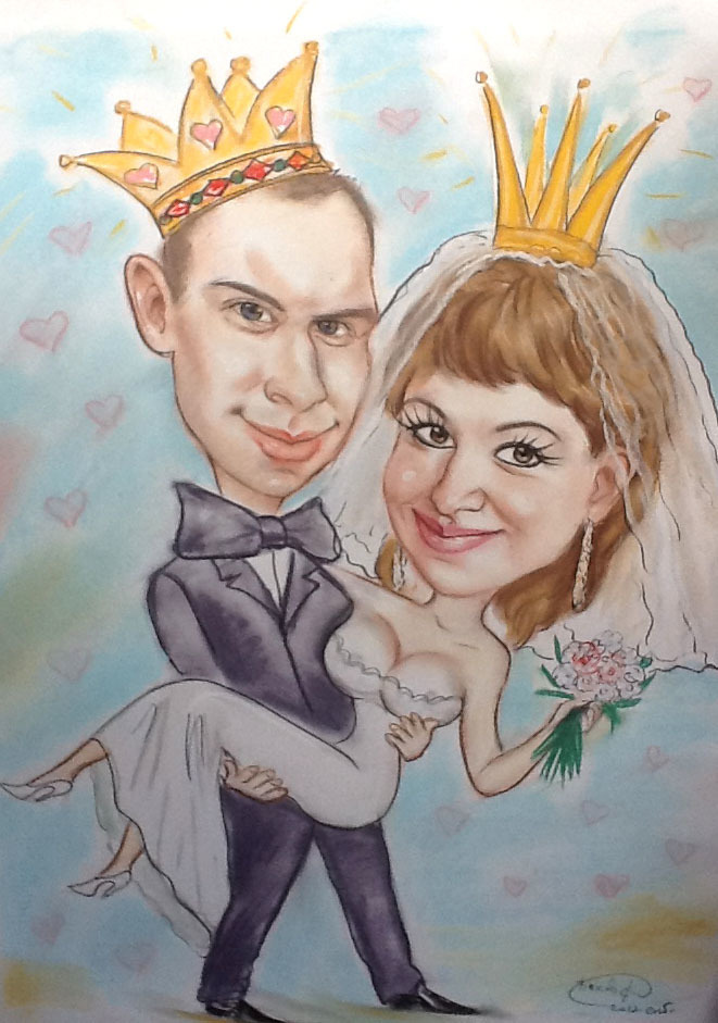 Работа создаётся по фото хорошего качества: чем лучше видны лицо, мимика и детали, тем точнее получится результат. Можно сделать шарж одного человека, пары или целой компании, а также объединить людей с разных фотографий в одну композицию. При желании добавляем сюжет: любимое хобби, профессию, интересные детали, фон или предметы — чтобы шарж выглядел персонально и «про вас».