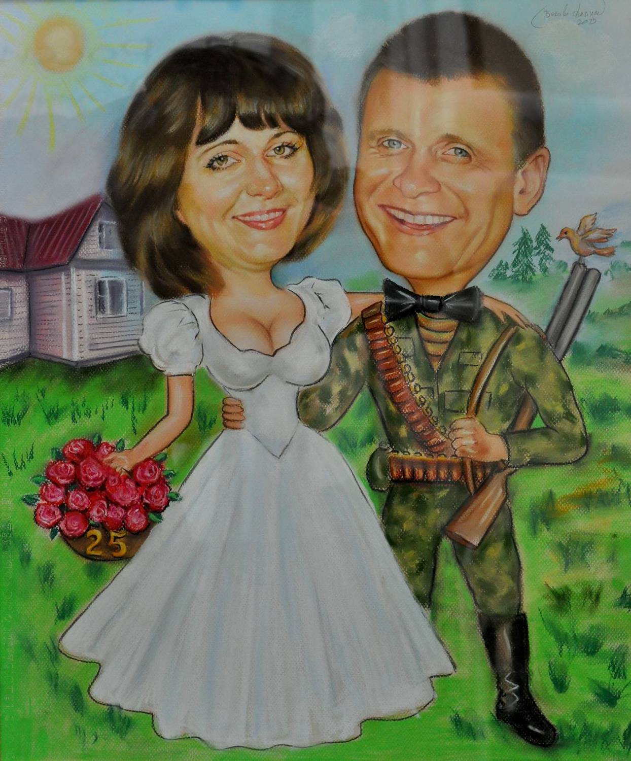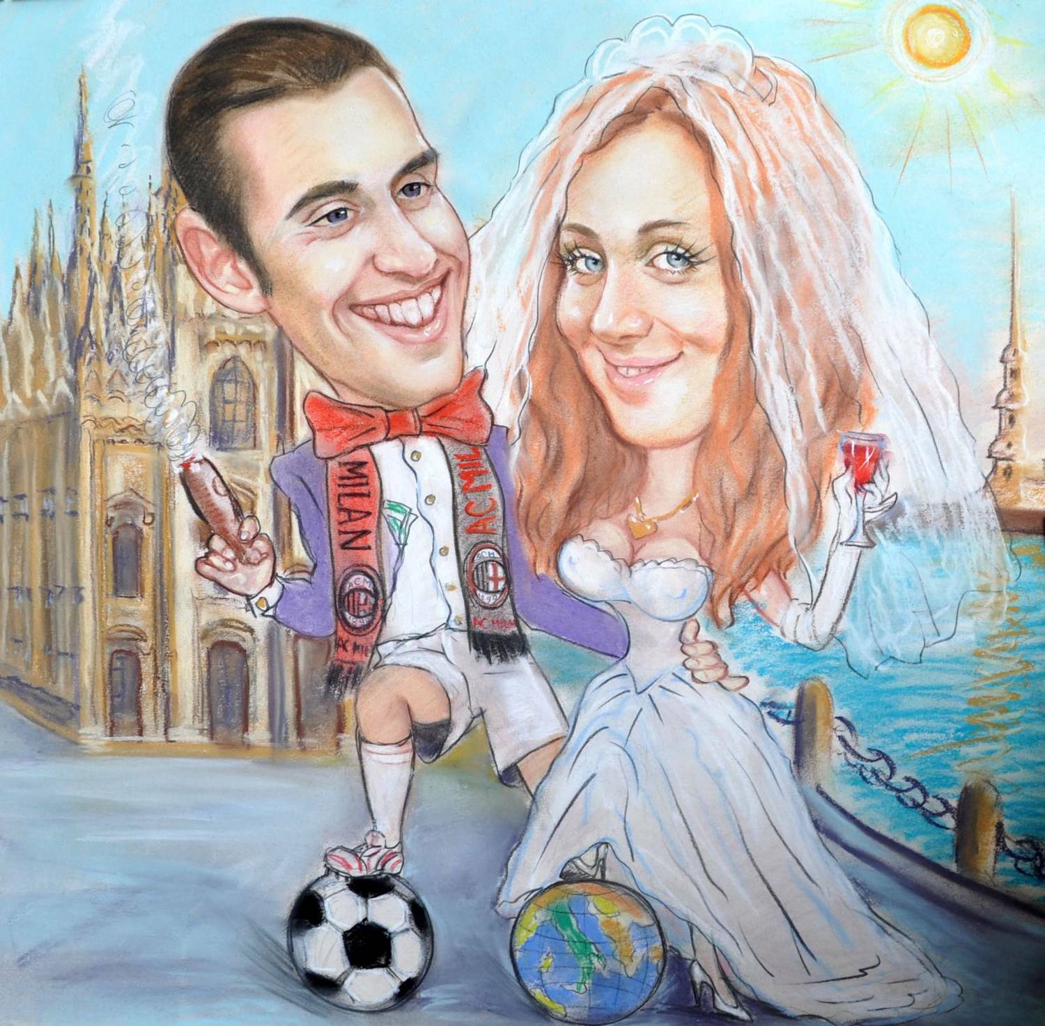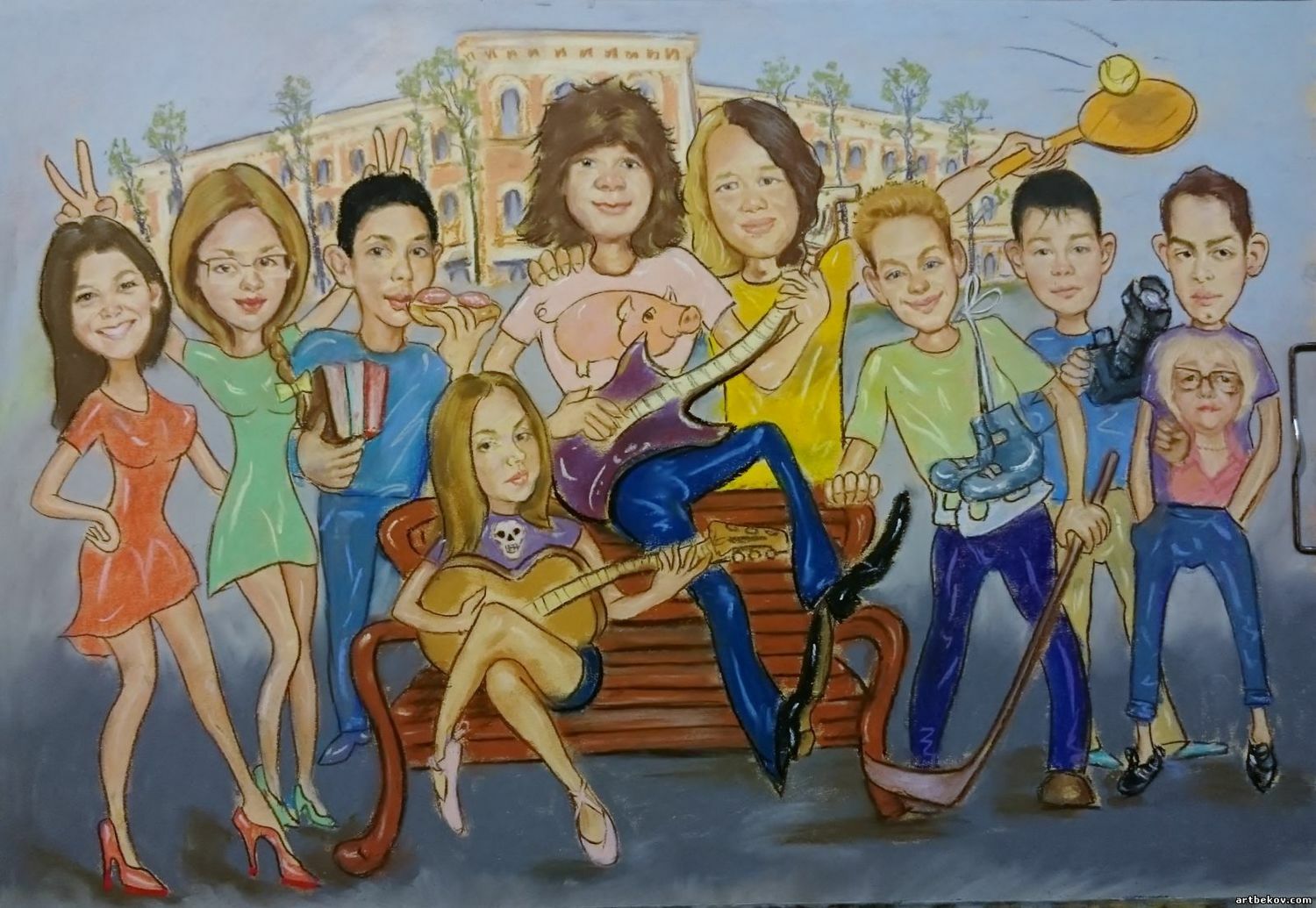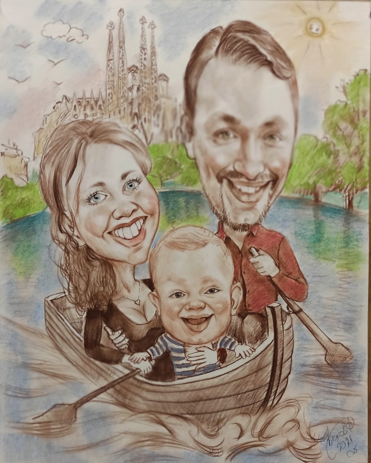 Работа создаётся по фото хорошего качества: чем лучше видны лицо, мимика и детали, тем точнее получится результат. Можно сделать шарж одного человека, пары или целой компании, а также объединить людей с разных фотографий в одну композицию. При желании добавляем сюжет: любимое хобби, профессию, интересные детали, фон или предметы — чтобы шарж выглядел персонально и «про вас».