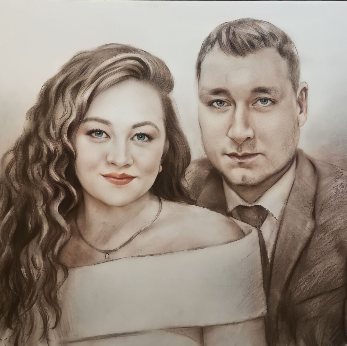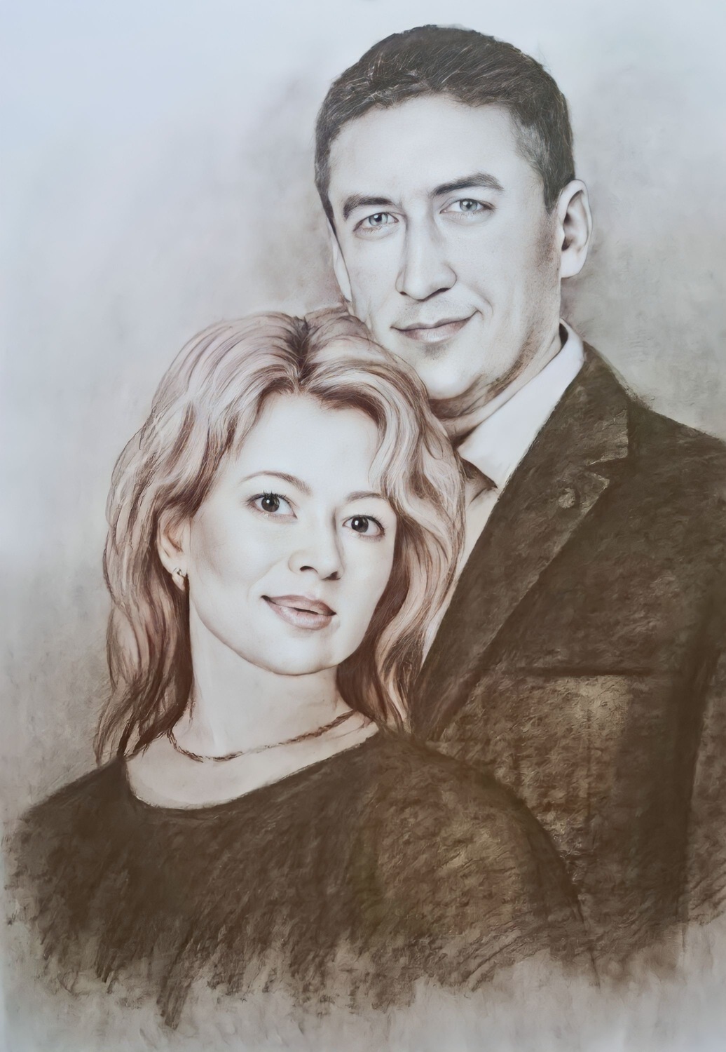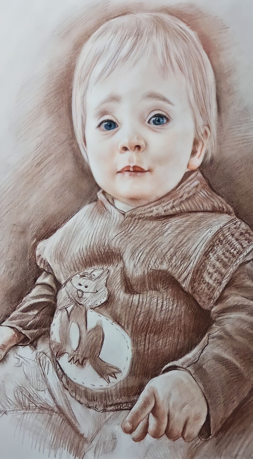 Главное преимущество — гибкость: мы можем выделить лицо, взгляд, руки, одежду или фон именно так, как вы хотите. При этом работа остаётся цельной, а материалы дополняют друг друга, усиливая впечатление и создавая эффект «живого» изображения.