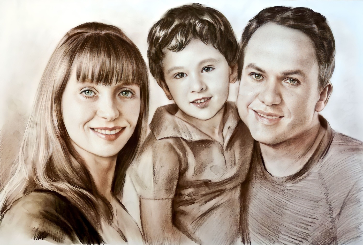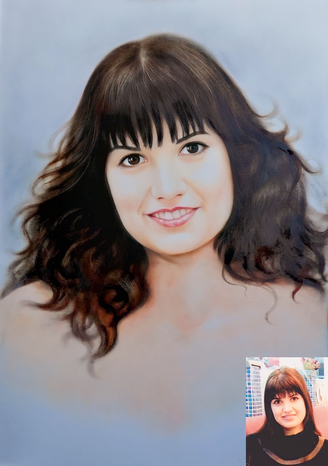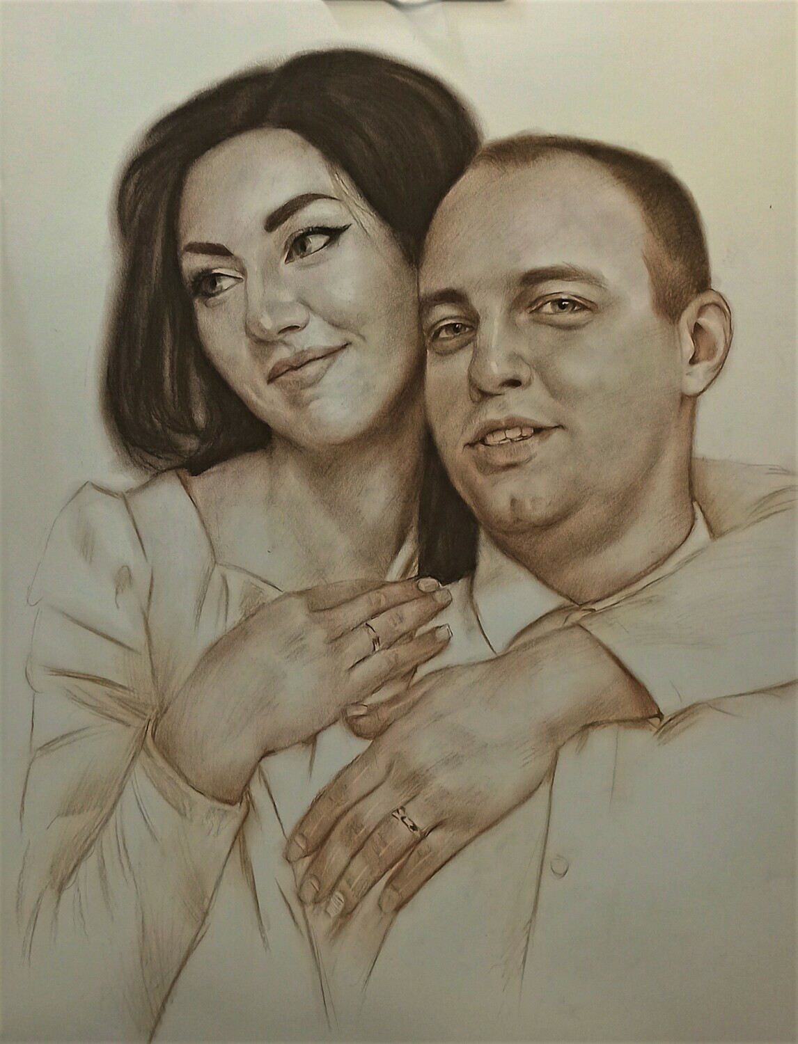 Главное преимущество — гибкость: мы можем выделить лицо, взгляд, руки, одежду или фон именно так, как вы хотите. При этом работа остаётся цельной, а материалы дополняют друг друга, усиливая впечатление и создавая эффект «живого» изображения.